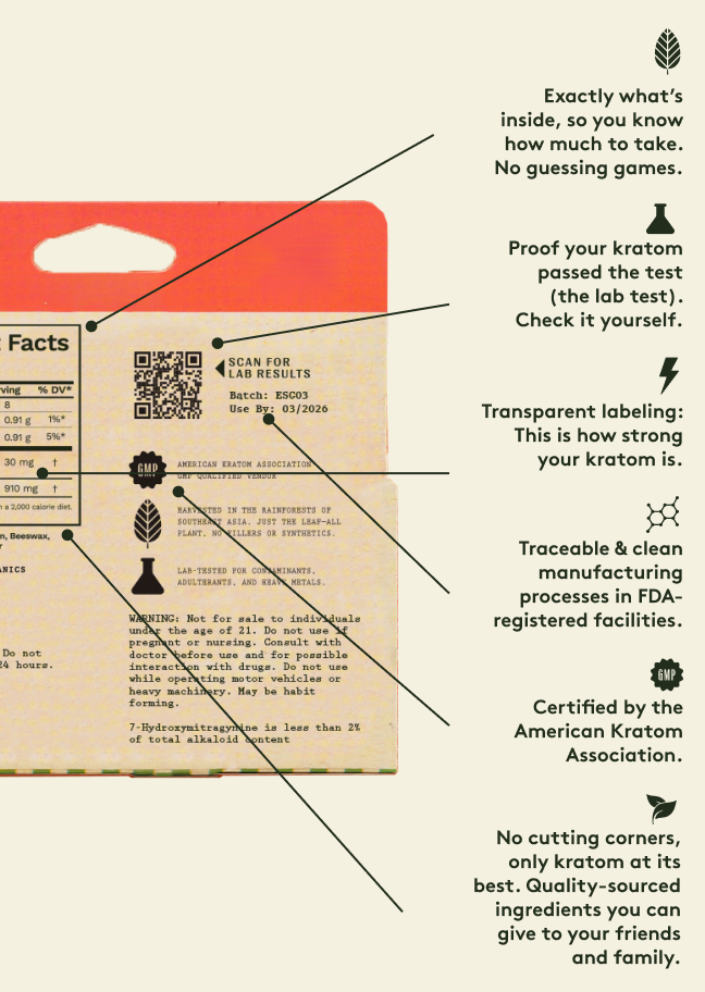 Take a peek into our thoughtful manufacturing choices — we’re proud to share how we create our high-quality kratom products.