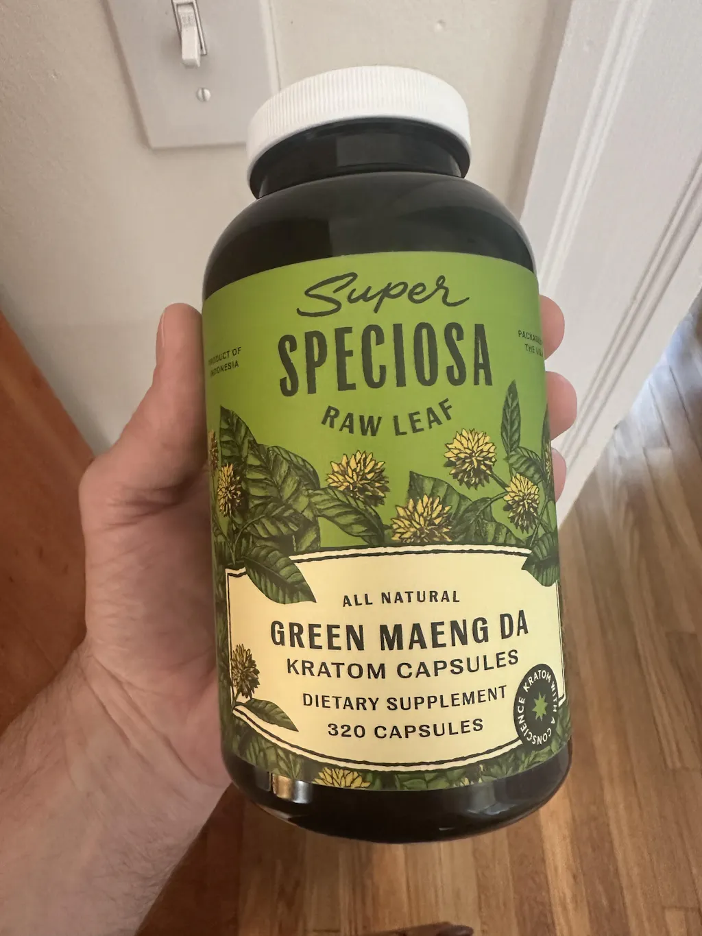 Start with a serving size of five capsules (each contains 500 mg of kratom).