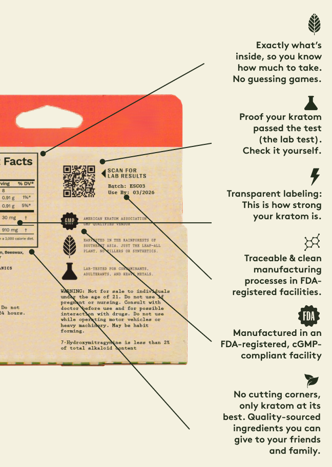 Take a peek into our thoughtful manufacturing choices — we’re proud to share how we create our high-quality kratom products.
